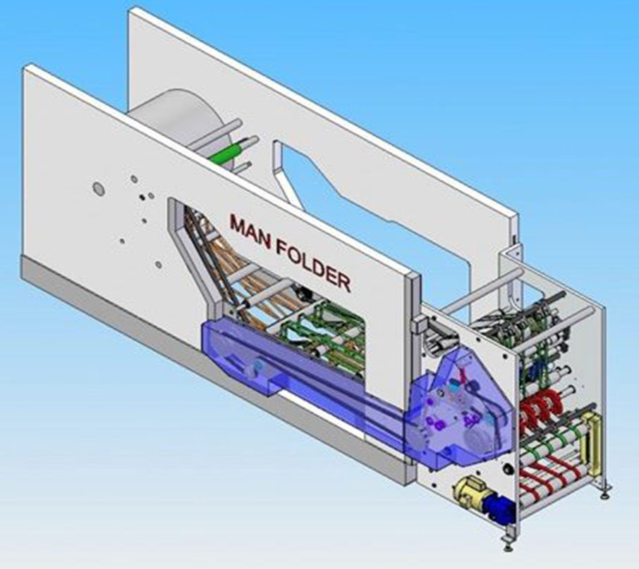 We pride ourselves in engineering your project from a sketch on a napkin through the documentation process, building parts, to a functioning piece of machinery. The image on this page is a double delivery for a Man Roland folder which allowed the customer to run two jobs at once. Designed, assembled and installed by CLW Engineering Inc.